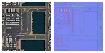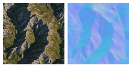 | ▼テクスチャ タイリングあり:住宅地、公園、航空写真 | ▼テクスチャ タイリングあり:山岳地帯、航空写真 | |