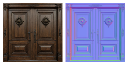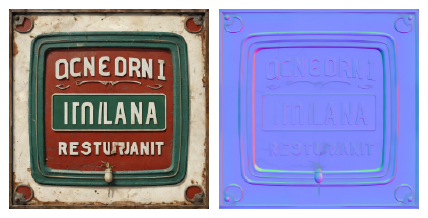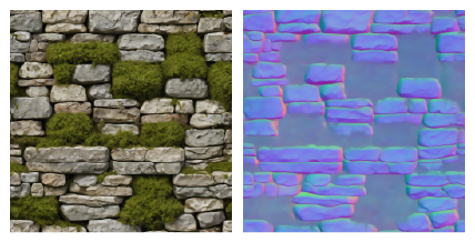 | 生成画像 1枚目:ベースカラー画像 2枚目:法線マップ | ||