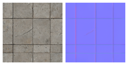 | ▼テクスチャ タイリングあり:コンクリートの床、ひび割れ | ▼テクスチャ タイリングあり:コンクリートの床、タイル、ひび割れ | |