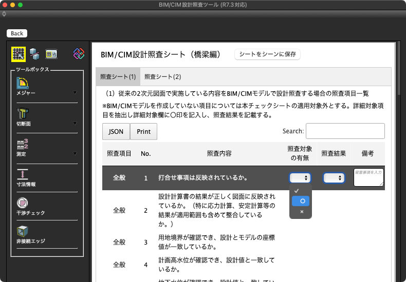 国土交通省「BIM/CIM 設計照査シートの運用ガイドライン(案)」に対応するBIM/CIM 設計照査対応機能
