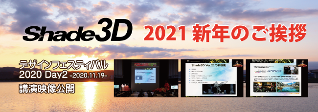 あわせて、昨年11月19日 デザインフェスティバル2020 Day2にて行われた、Shade3Dの最新情報と今後の展望に関するプレゼンテーションの動画を公開させていただきました。今後の展望や新機能など、新年に相応しい将来的なビジョンを熱く解説させていただいていますので、ぜひご確認ください。
