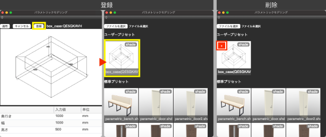 パラメトリックモデリングのユーザカタログへシーンデータを登録できるようになりました。