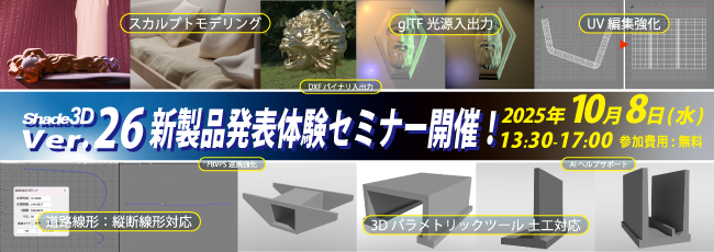 ・【2025年10月8日】Shade3D Ver.26 新製品発表体験セミナー開催!