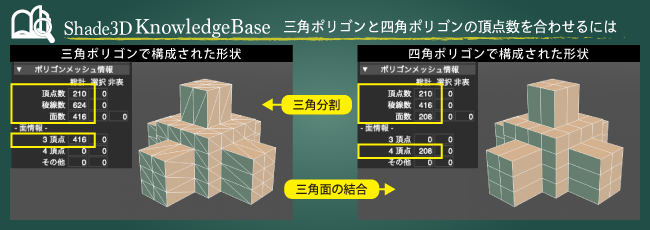 ・Shade3Dナレッジベース 「三角ポリゴンと四角ポリゴンの頂点数を合わせるには」