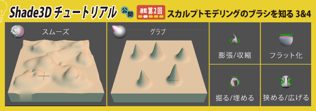 ・Shade3D チュートリアル 第2回「スカルプトモデリングのブラシを知る 3 & 4」