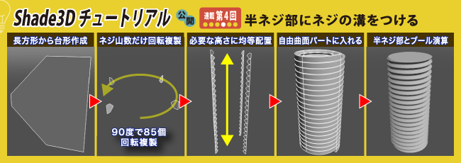 ・Shade3D チュートリアル 第4回「半ネジ部にネジの溝をつける」